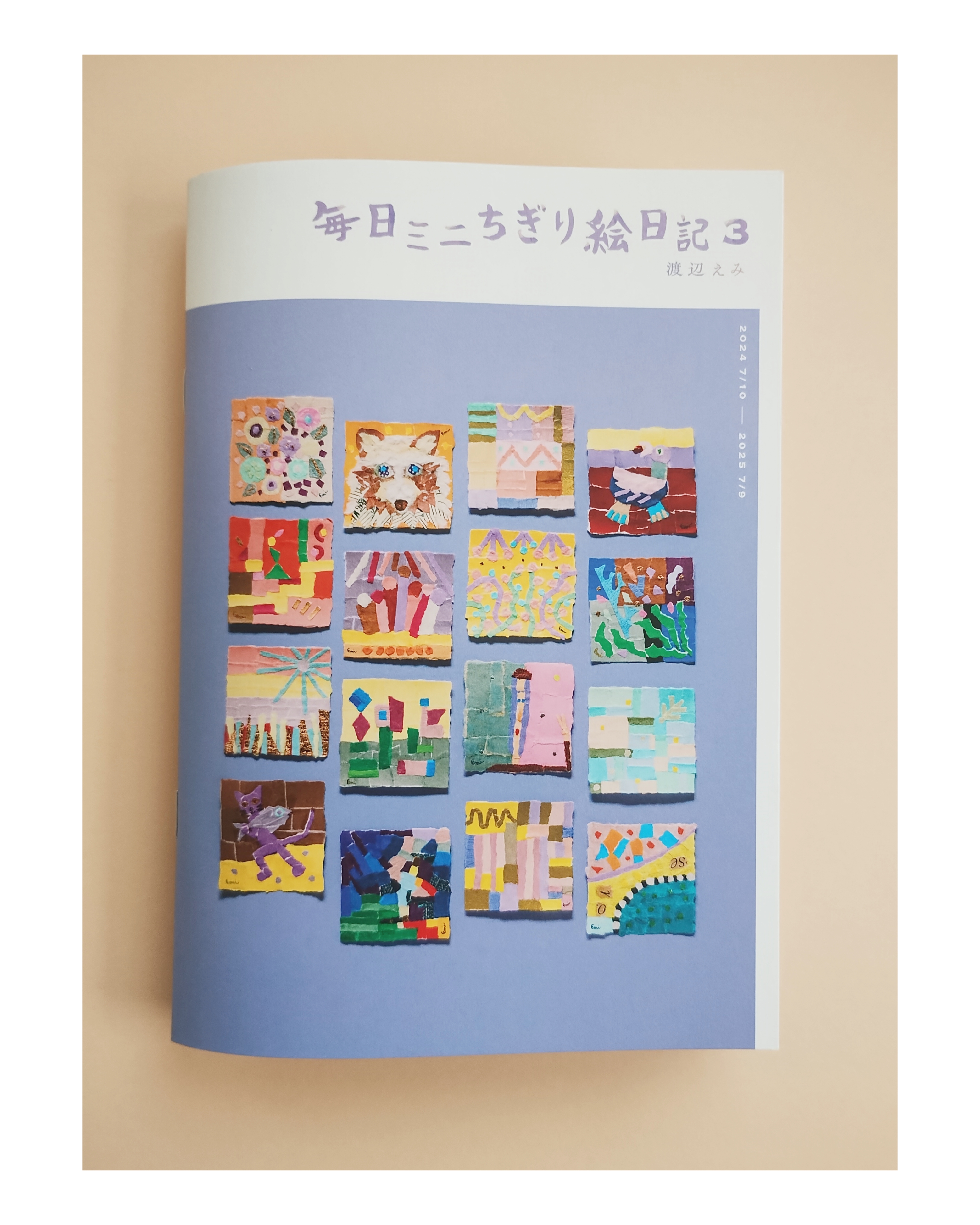 3年目の毎日ミニちぎり絵365枚+日記、小話を収録。